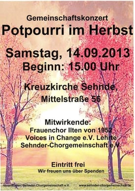 .... Konzert im Herbst 2013 in Zusammenarbeit mit dem Frauenchor Ilten und der Sehnder Chorgemeinschaft.